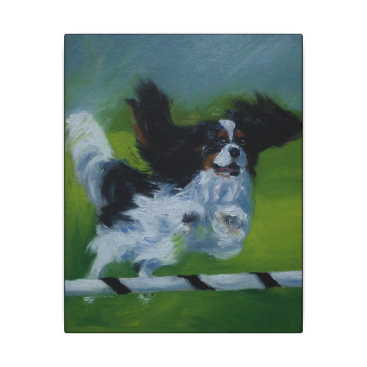 "Competitive" Canvas Print - Tri Color Cavalier King Charles Spaniel Agility Art
