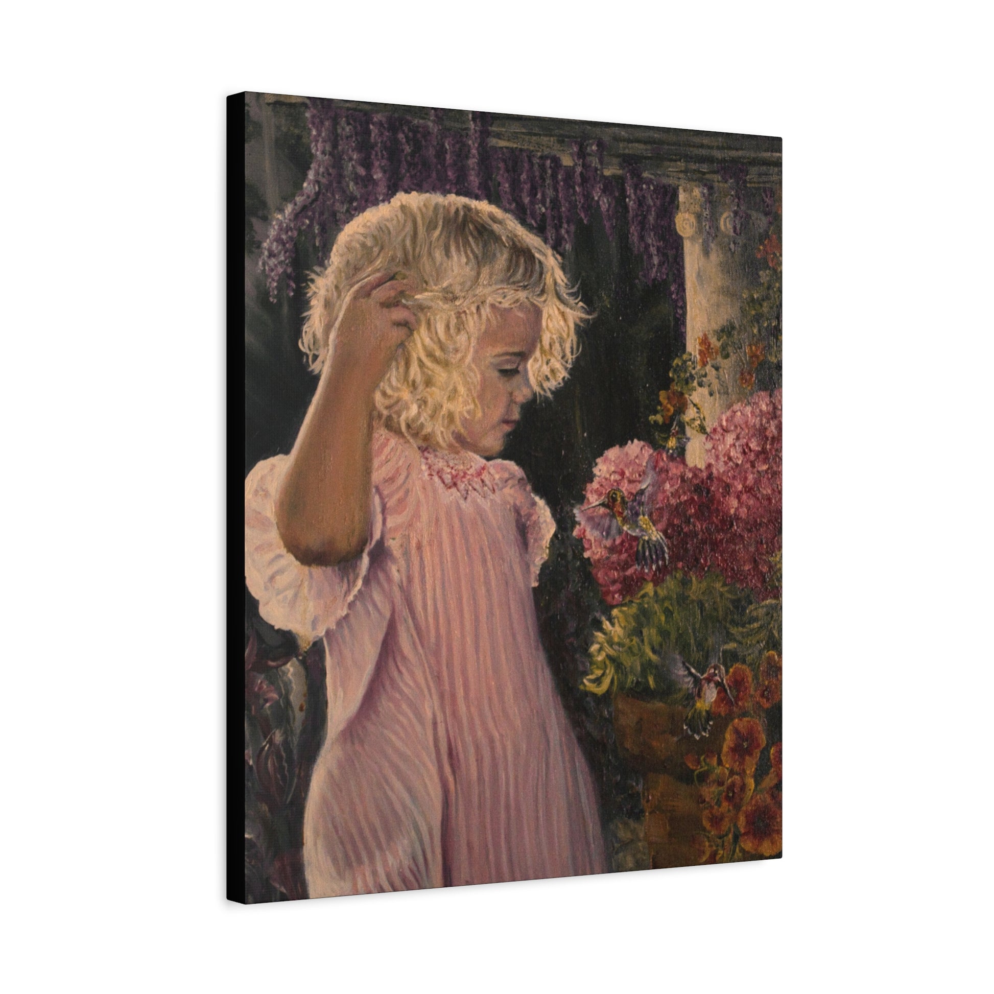 "Garden Surprise" Canvas Print - Girl with Hummingbirds Art